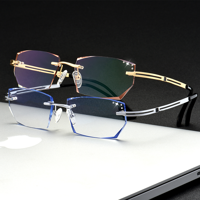 无框近视切边眼镜记忆纯钛超大眼镜框宽脸商务男士纯钛眼镜成品