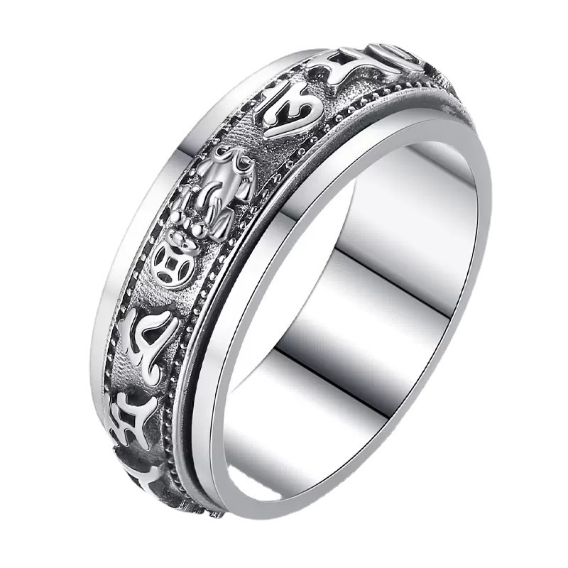 【新年转运】奢遇自律戒指男纯银貔貅潮六字真言轻奢小众复古情侣