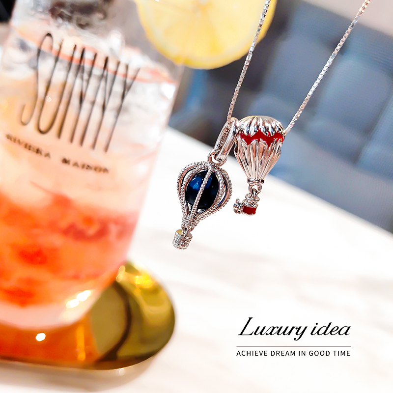 网红ins风海洋之心梦幻热气球项链女纯银转运珠项链延长链