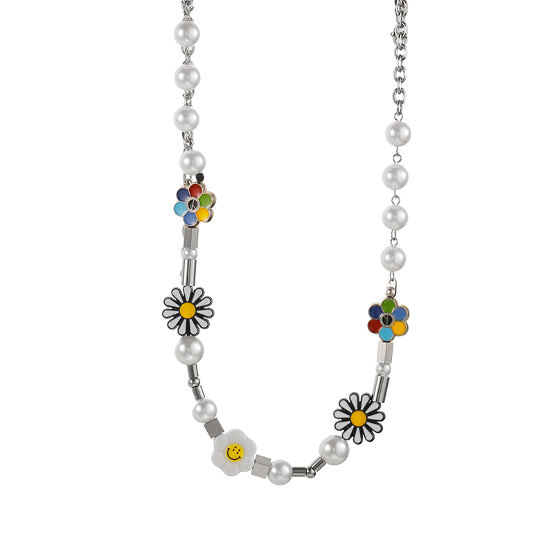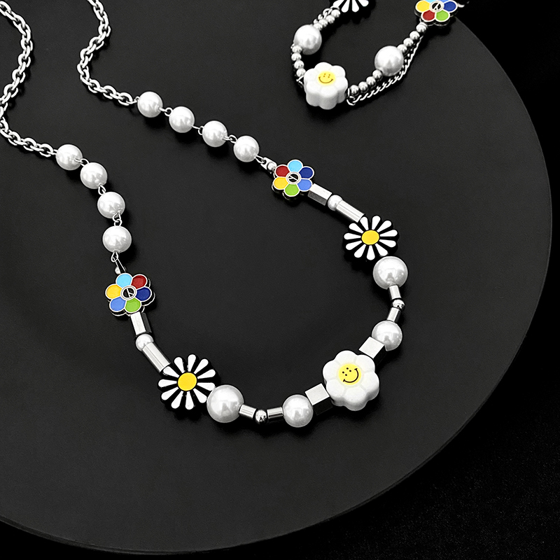 笑脸珍珠拼接项链男士轻奢小众设计感高级毛衣链女生秋冬休闲颈链