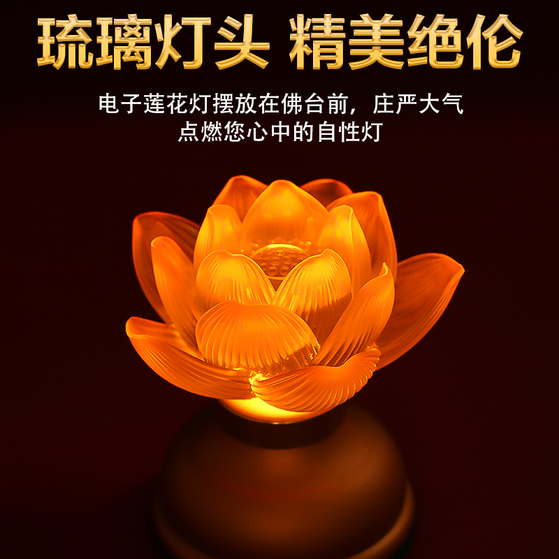 琉璃莲花灯菩萨上供佛堂供佛灯佛前供灯家用led一对长明灯神台灯
