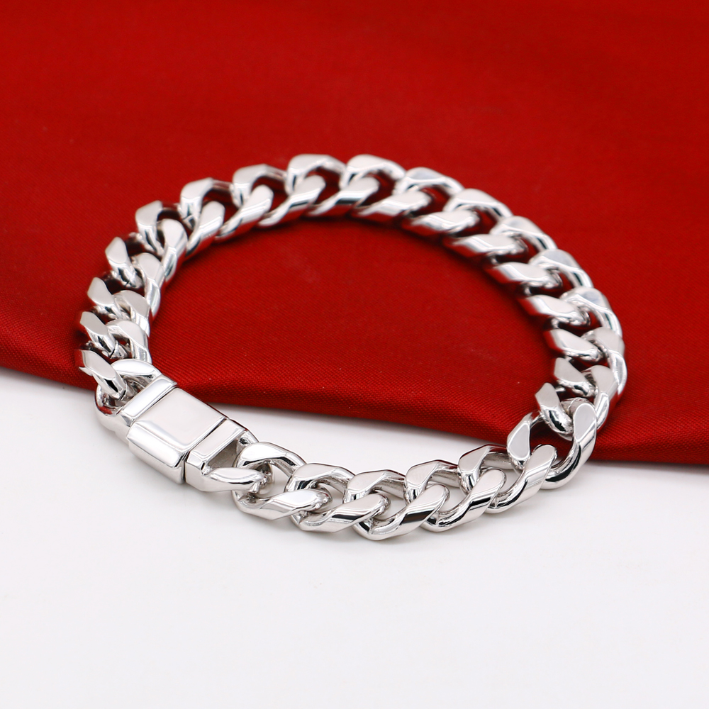 欧美创意新925银手链男士纯银韩版潮个性粗大简约百搭白金色霸气