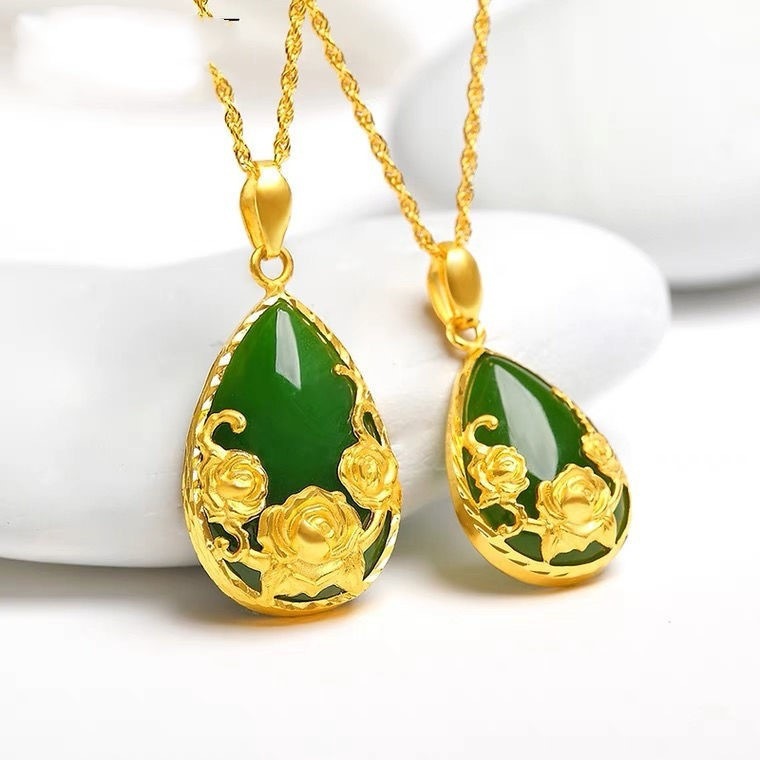 越南沙金爱心水滴宝石吊坠项链婚庆仿真女士宝石饰品绿宝石时尚女