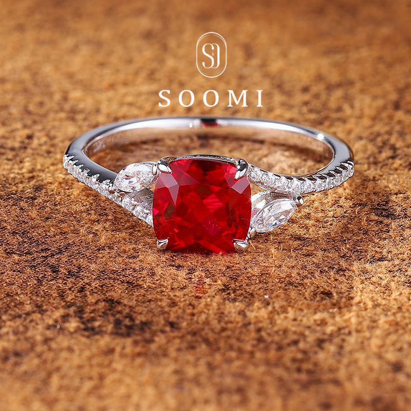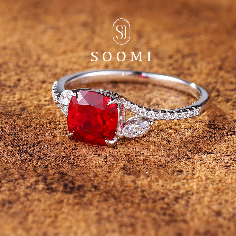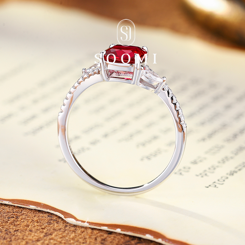 【新品 瑰丽】红宝石戒指2ct培育缅甸鸽血红彩宝女戒925银镀18k