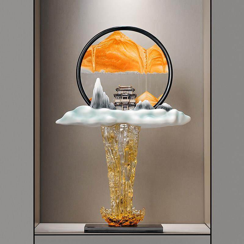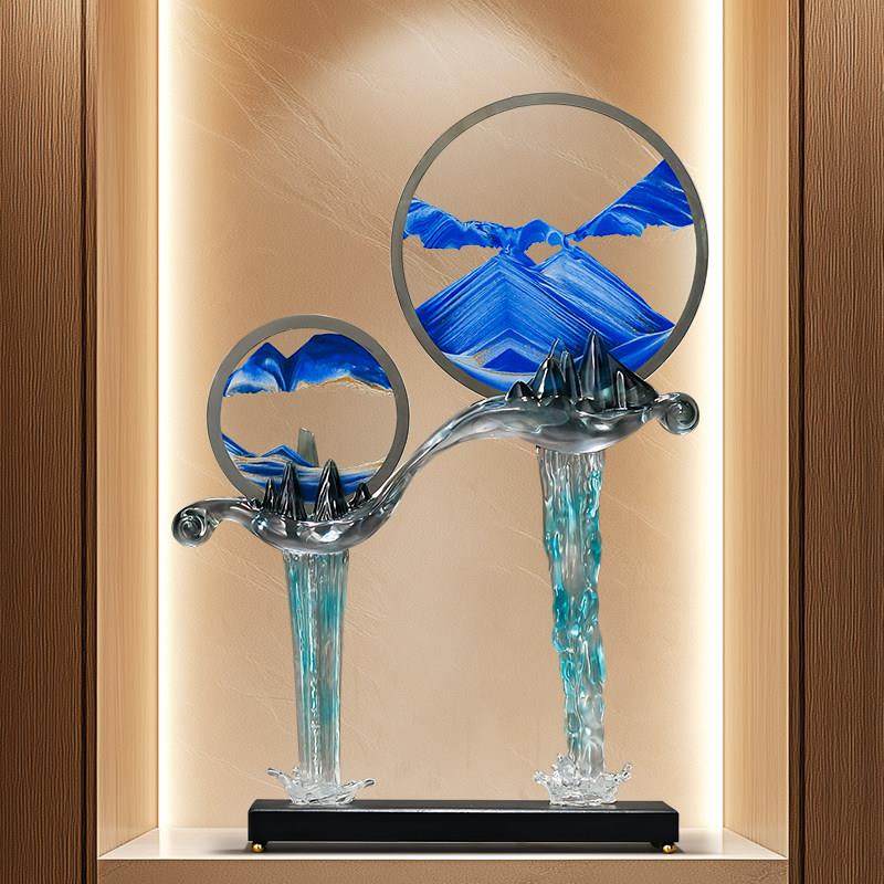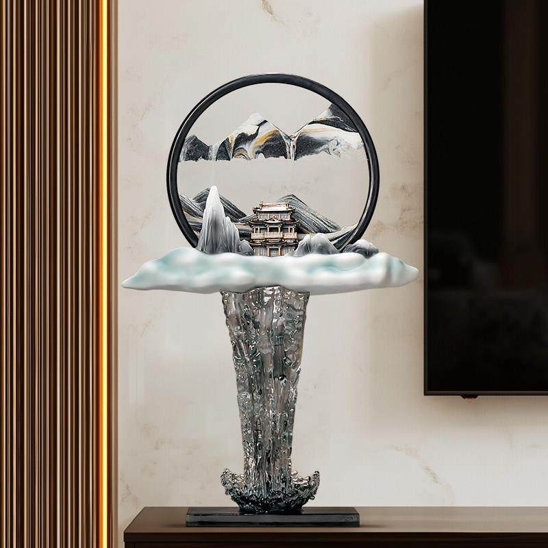 流水生财假山流沙画摆件客厅入户玄关造景办公室高级感家居装饰品