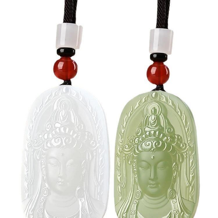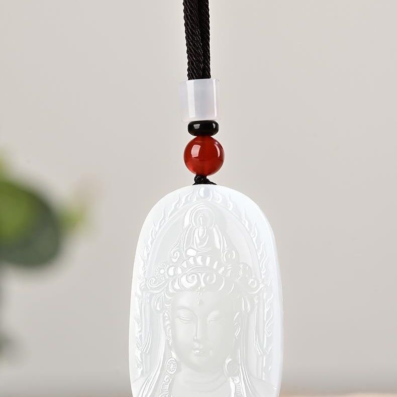 新疆和田阿富汗玉新款冰种雕刻观音像纯天然吊坠高档雕刻男款