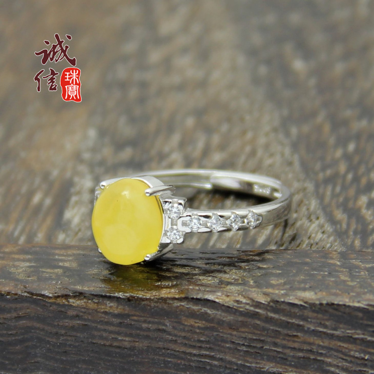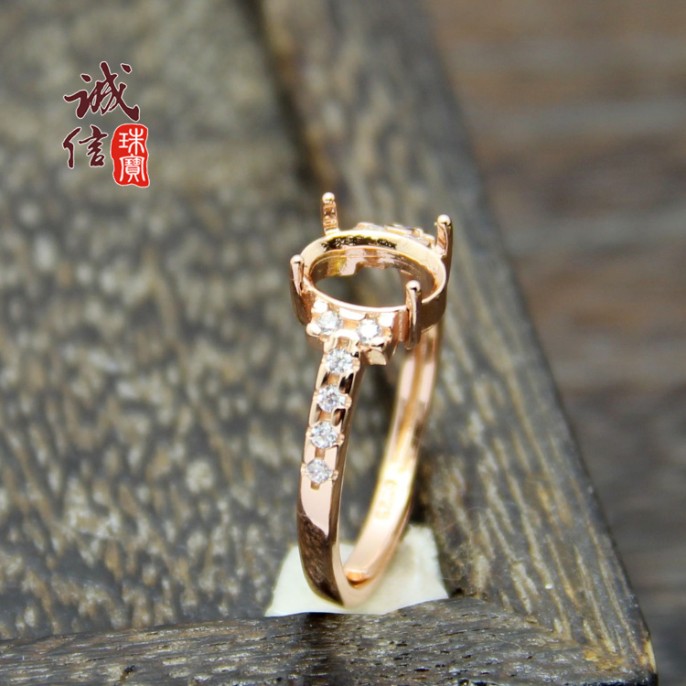 S925纯银戒指空托时尚微镶女款银戒托DIY蜜蜡松石玉石镶嵌6.5*8.5