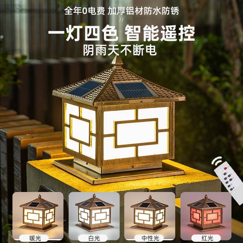 太阳能方形柱头灯室外庭院别墅墙头围墙LED大门灯家用户外门柱灯