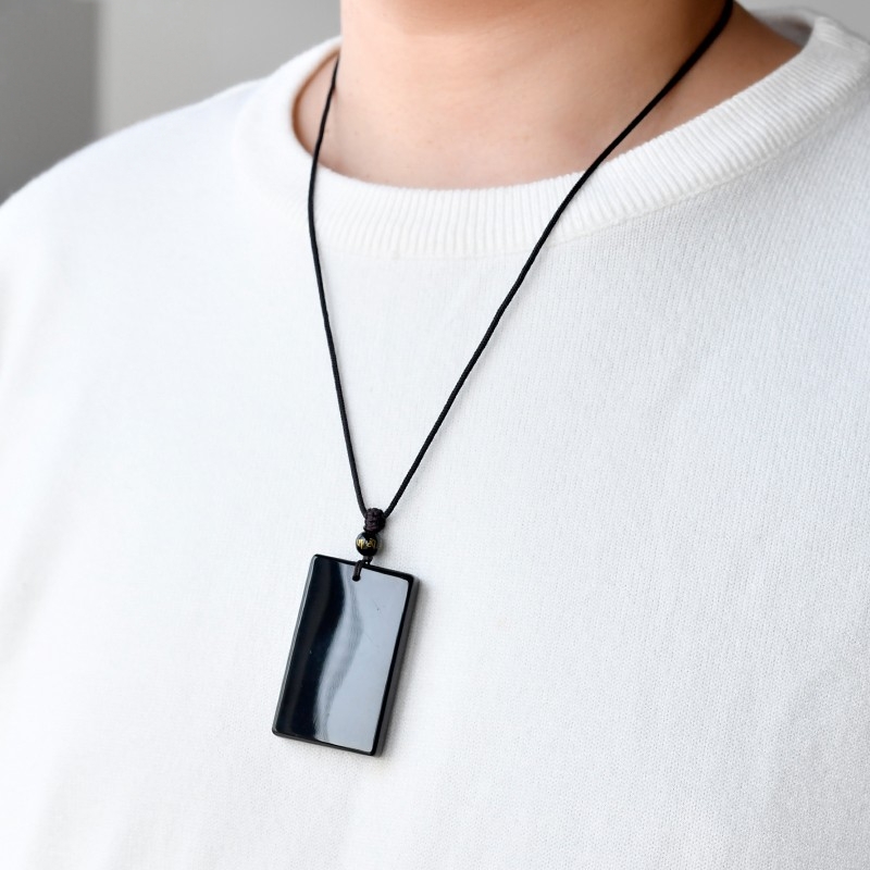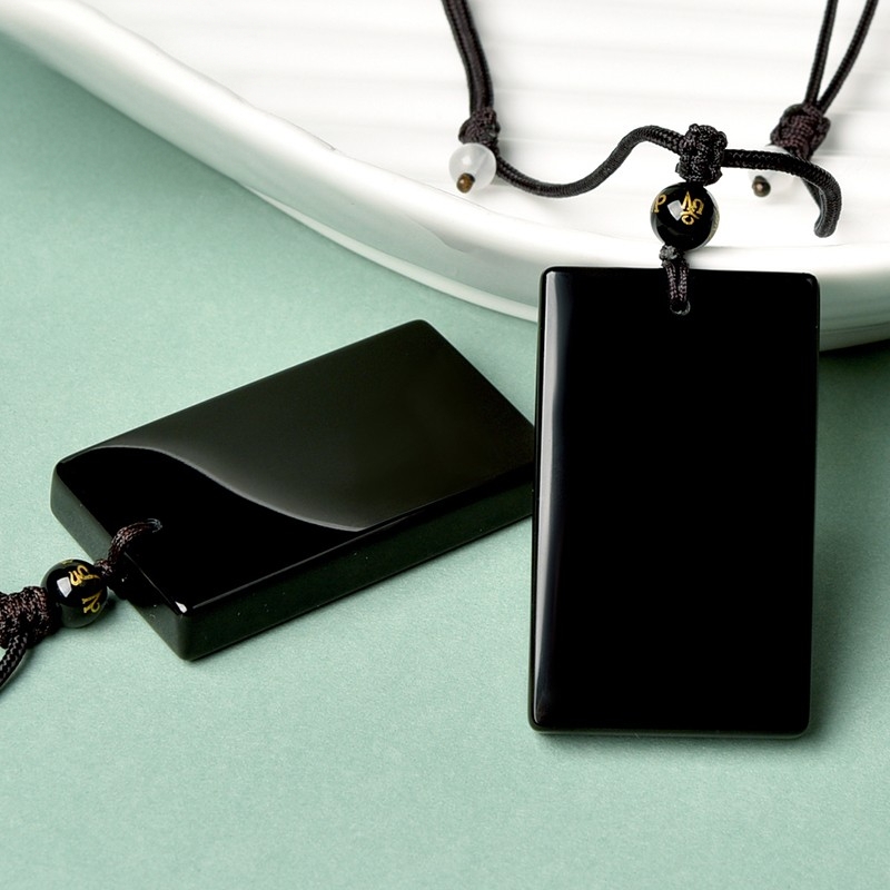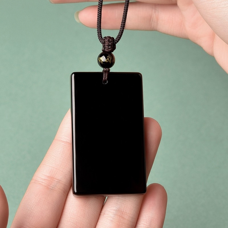 普陀山的祝福收藏级乌金黑曜石平安无事牌吊坠黑耀石挂件水晶项链