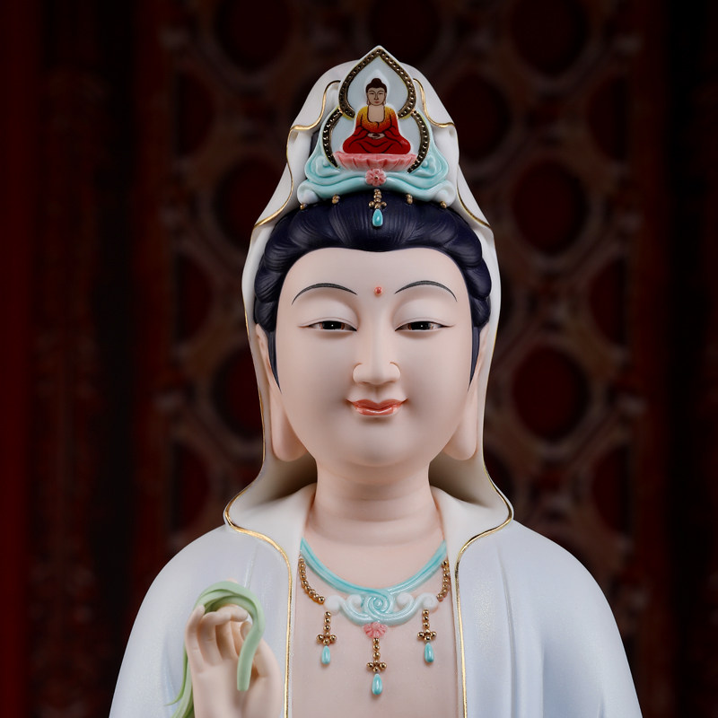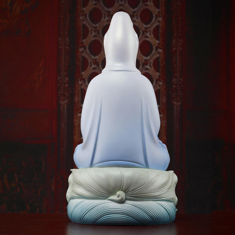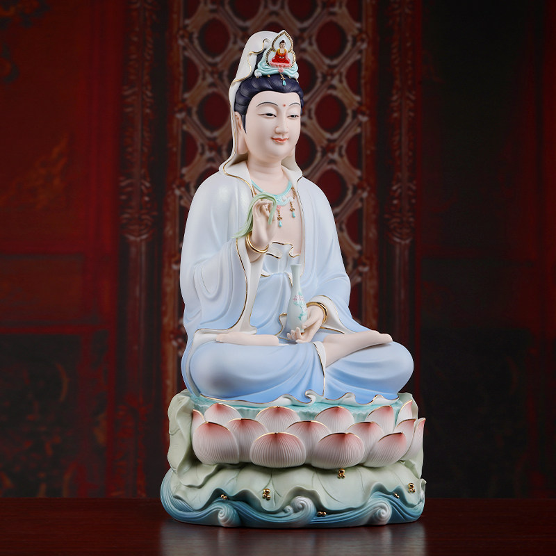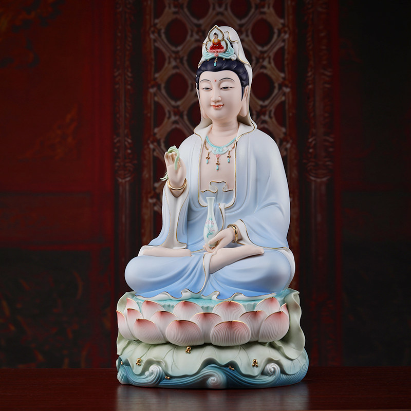 戴玉堂陶瓷摆件《明净观音盘腿坐莲像》观世音佛像家用供奉菩萨