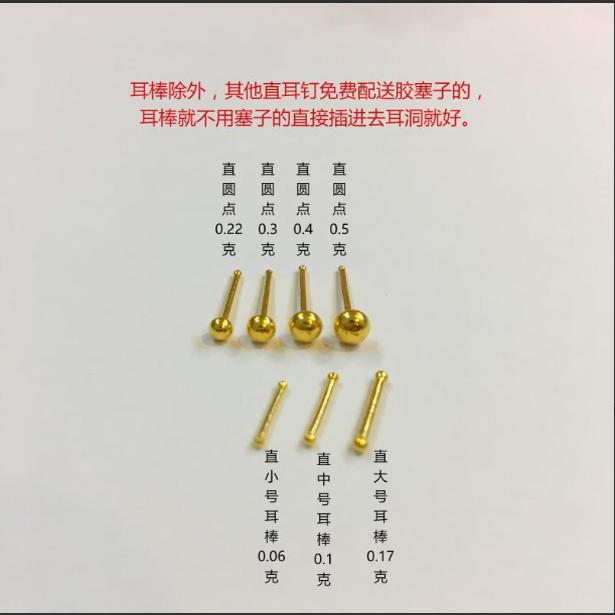 999足金耳钉 圆头养耳棒耳棍 纯金耳钉迷你小黄金棒防过敏男女款