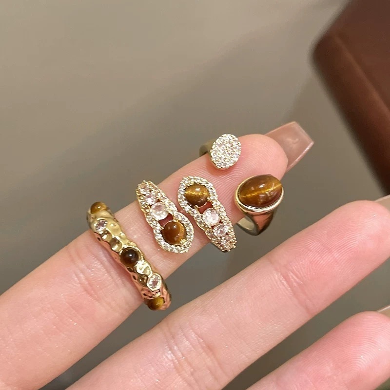 开心节拍虎眼石开口戒指女高级独特设计感复古食指戒轻奢指环女