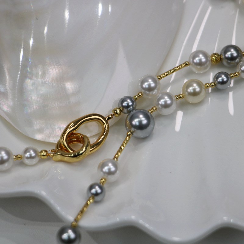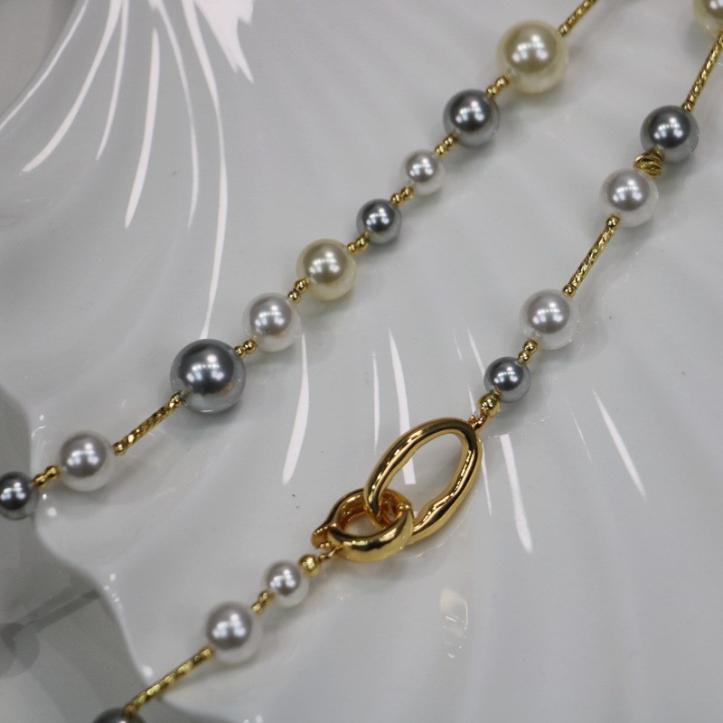 真多麻糖果混色珍珠项链长款轻奢毛衣链多种戴法2.024秋冬