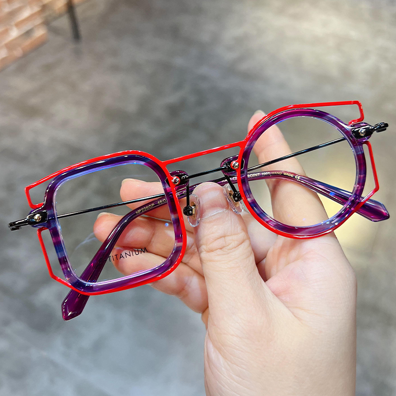 简丹萝心潮百搭新品一方一圆个性眼镜框男女时尚钛架超轻配近视