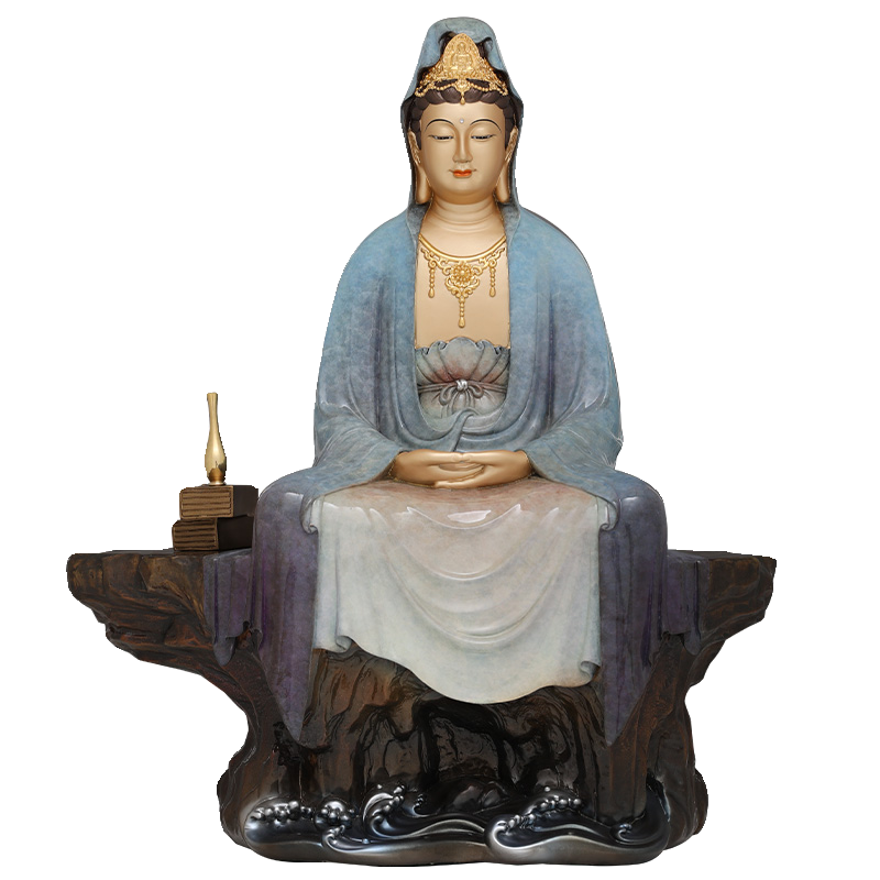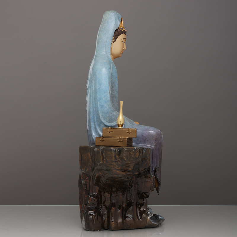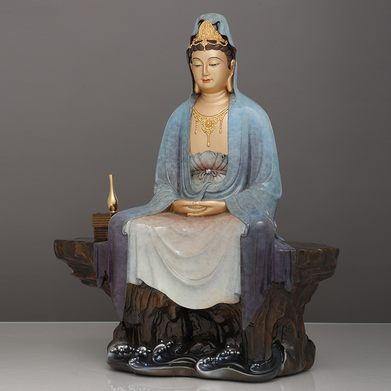 台湾纯铜南海禅定观音佛象摆件高温着色观世音菩萨佛像客厅保平安