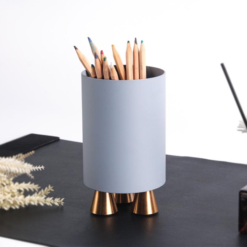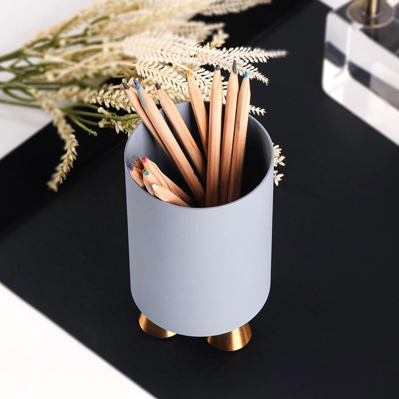 北欧轻奢风笔筒创意办公室桌面摆件卧室化妆刷收纳桶样板房装饰品