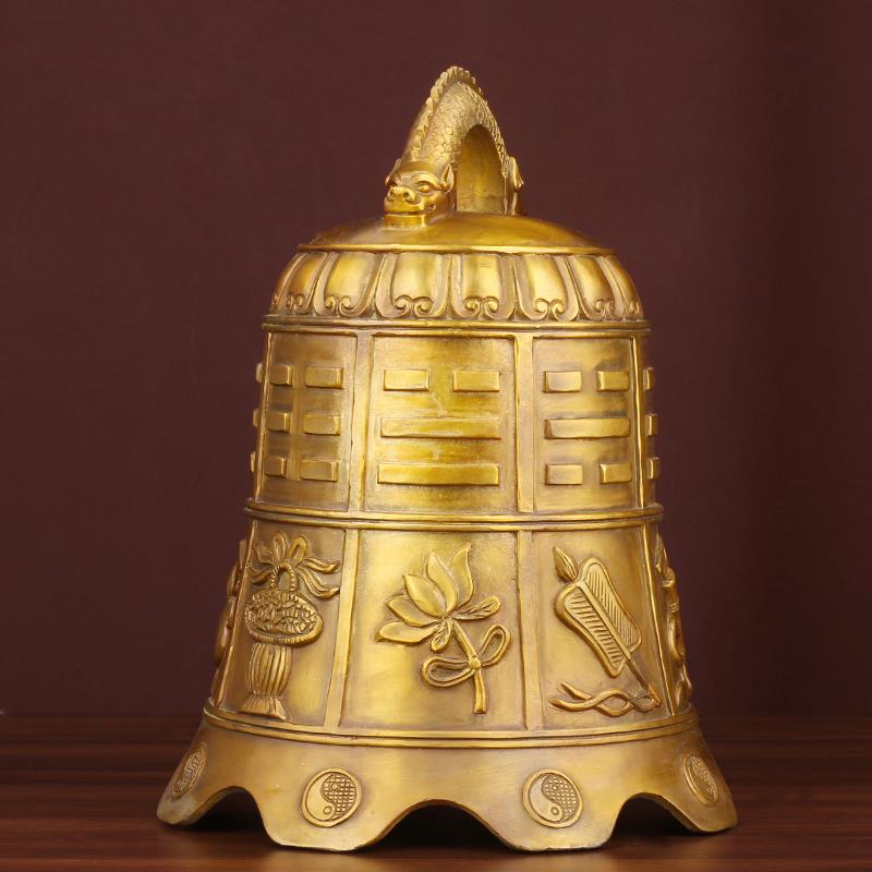 镇屋五黄二黑黄铜八仙钟家居摆件八宝铜铃铛挂件平安家居门饰