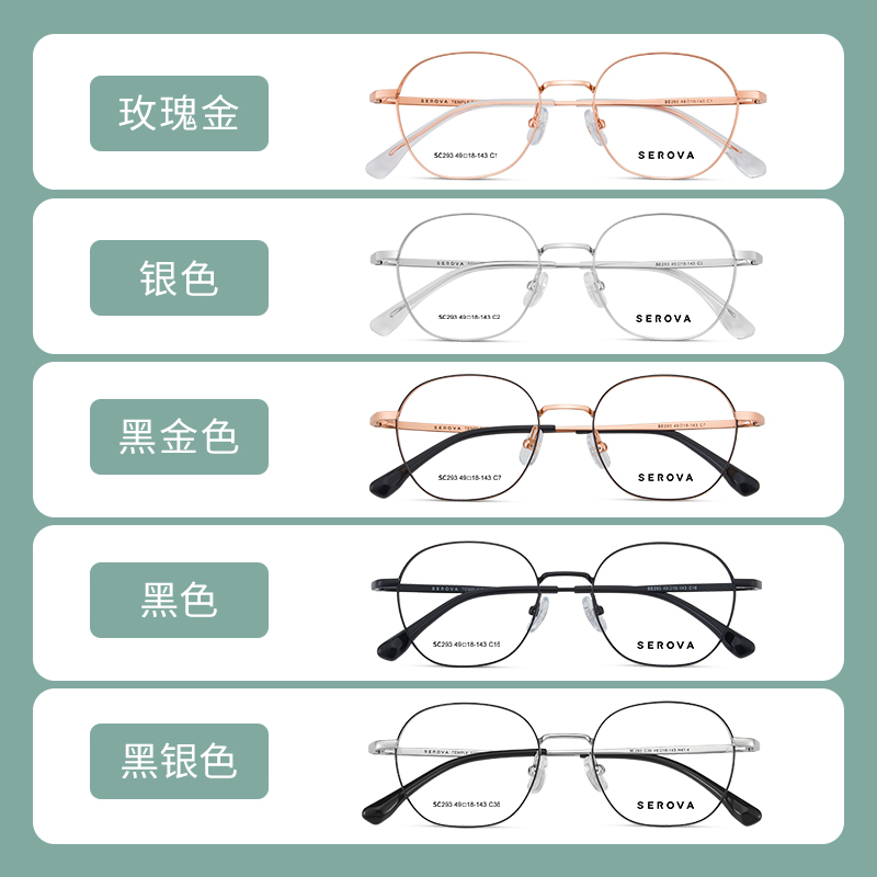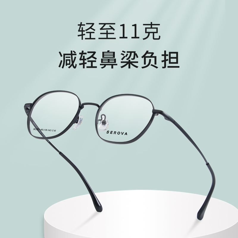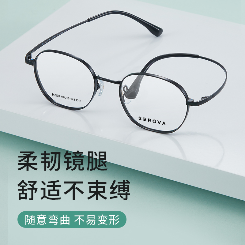 施洛华近视眼镜超轻钛合金圆框镜架宽边设计可配高度数镜片SC293