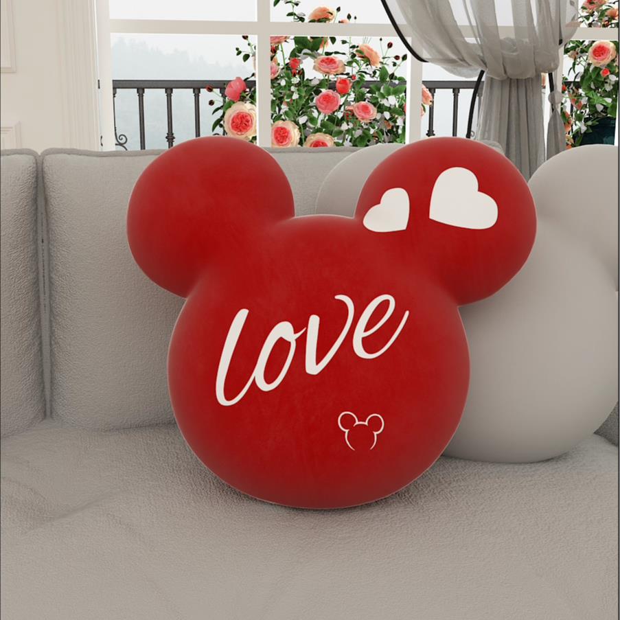 抱枕波点蝴蝶结米奇现代简约可爱办公室车用红色黑白礼物靠垫靠枕