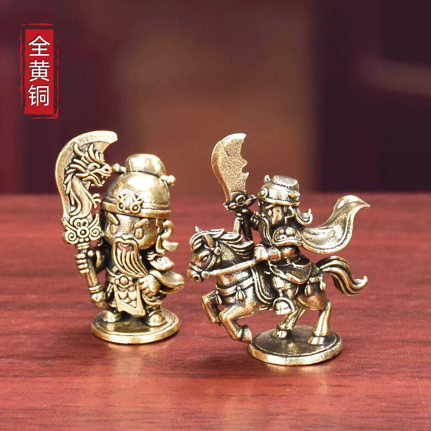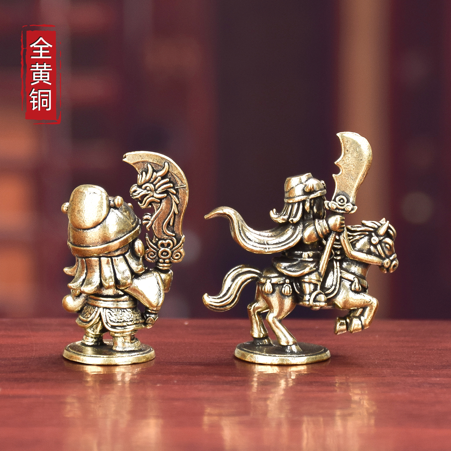 纯黄铜骑马关公小号带刀关公复古办公室桌面装饰茶宠工艺品铜摆件