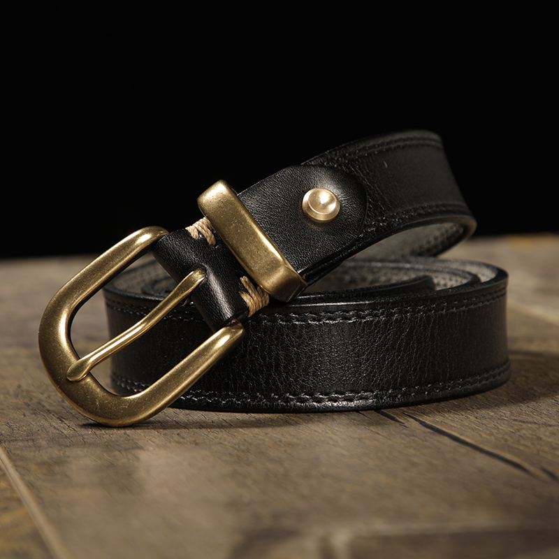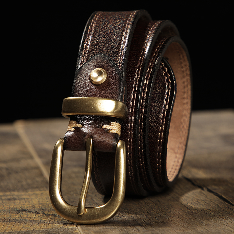 手工复古女士铜戒指头牛仔裤百搭皮带女夏头层牛皮真皮腰带ins风