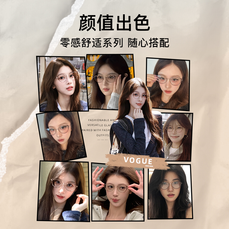 CAPONI猫眼眼镜女高级感素颜镜框近视镜片度数可配防蓝光 34025