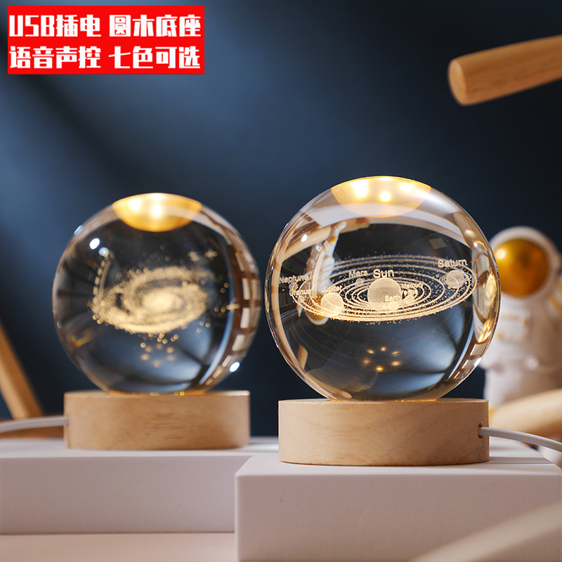 发光水晶球桌面小摆件创意声控玻璃球装饰品小夜灯生日毕业季礼物
