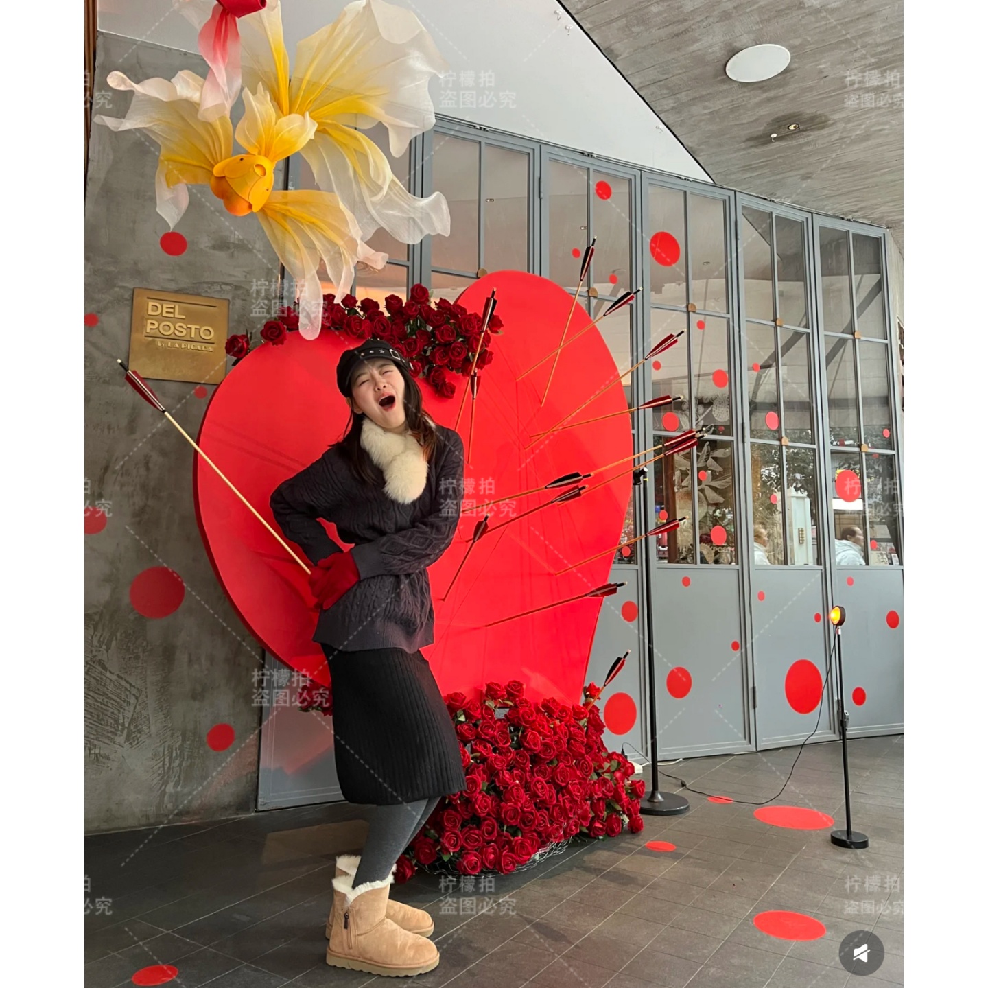 红色爱心丘比特圣诞节网红商场店铺静置打卡拍照背景墙摆件道具