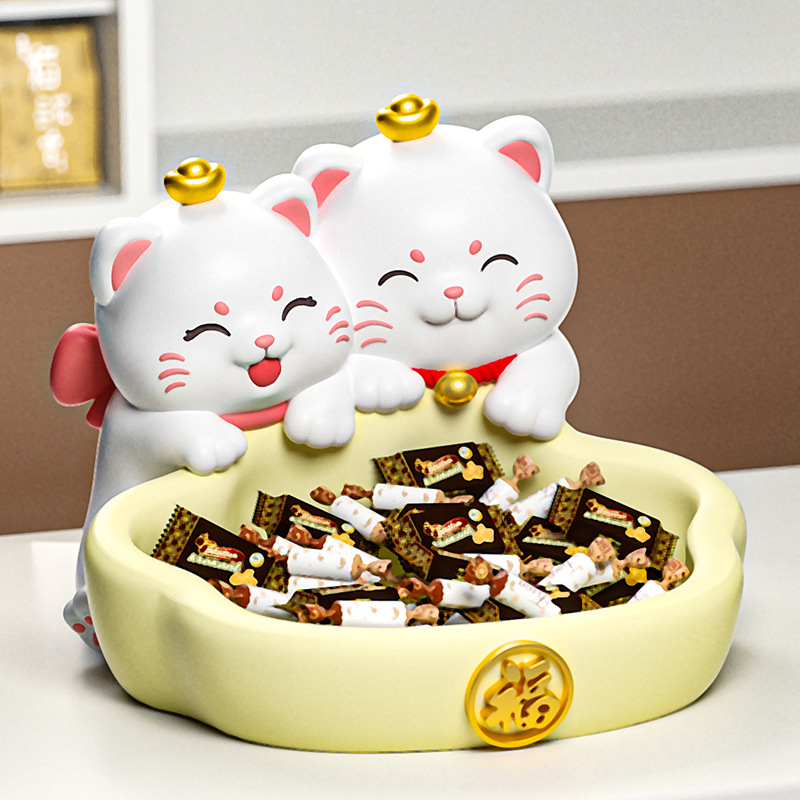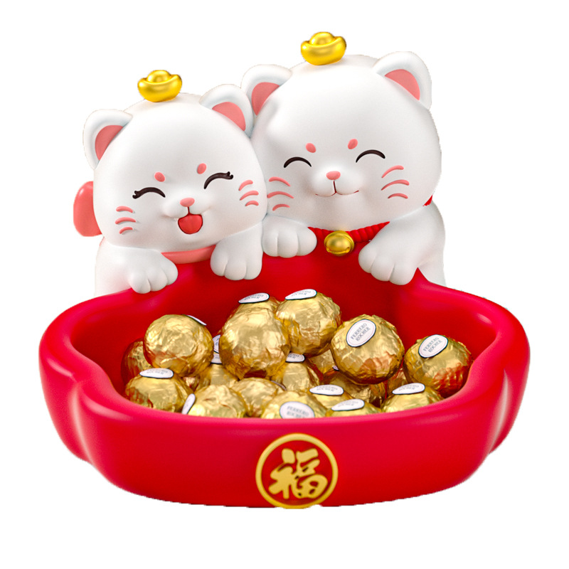 招财猫装放糖果盘零食水果盘前台收纳摆件店铺收银台新店开业礼物