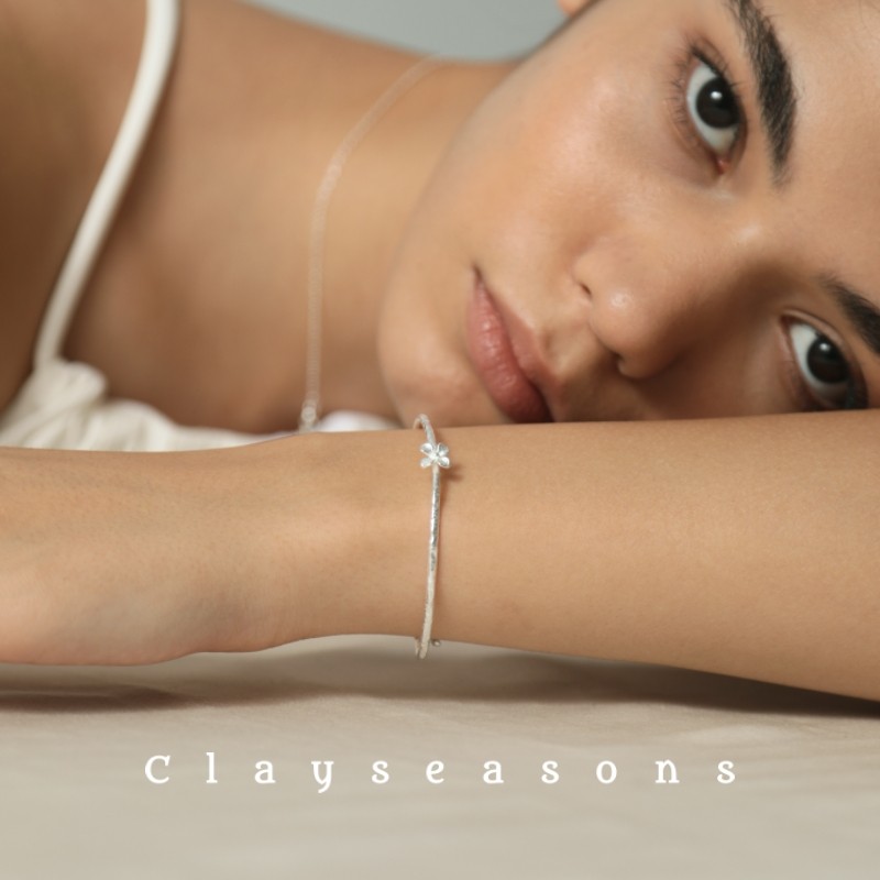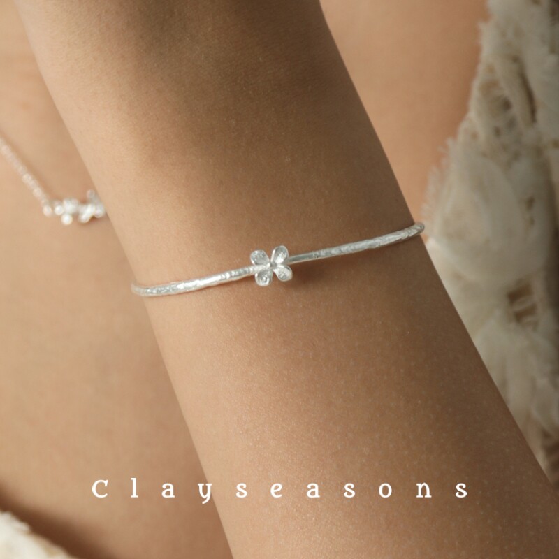 Clayseasons丁香手镯度假风925纯银原创设计肌理小花手工精致少女