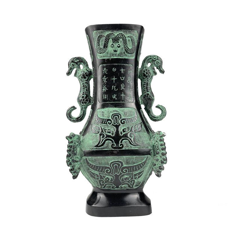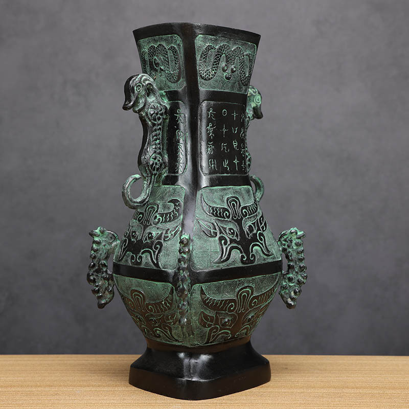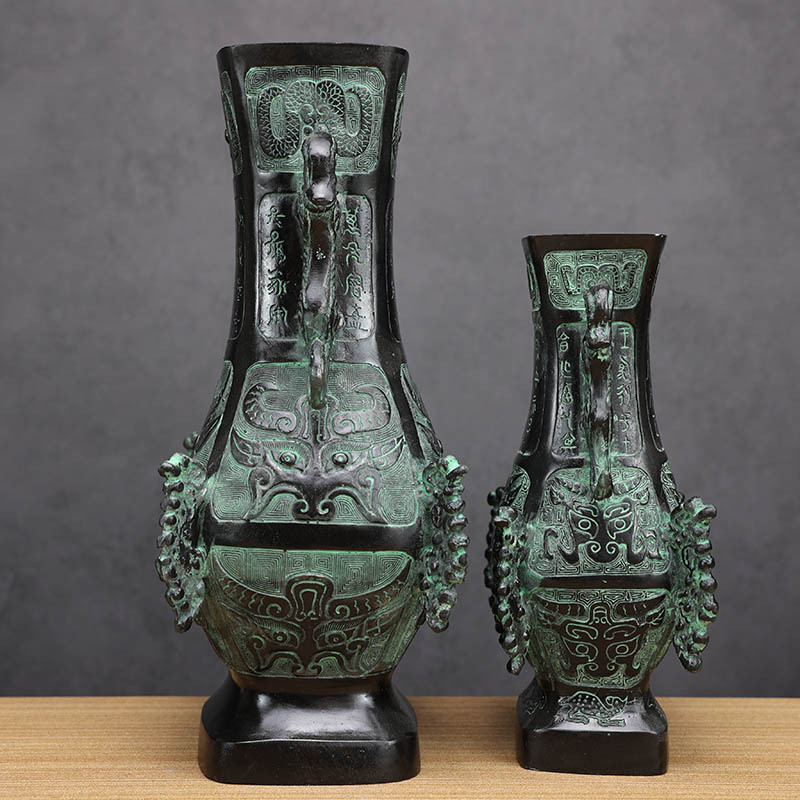 热销仿古青铜器客厅书房摆件双龙龙瓶大号四尊家居办公桌博古架装