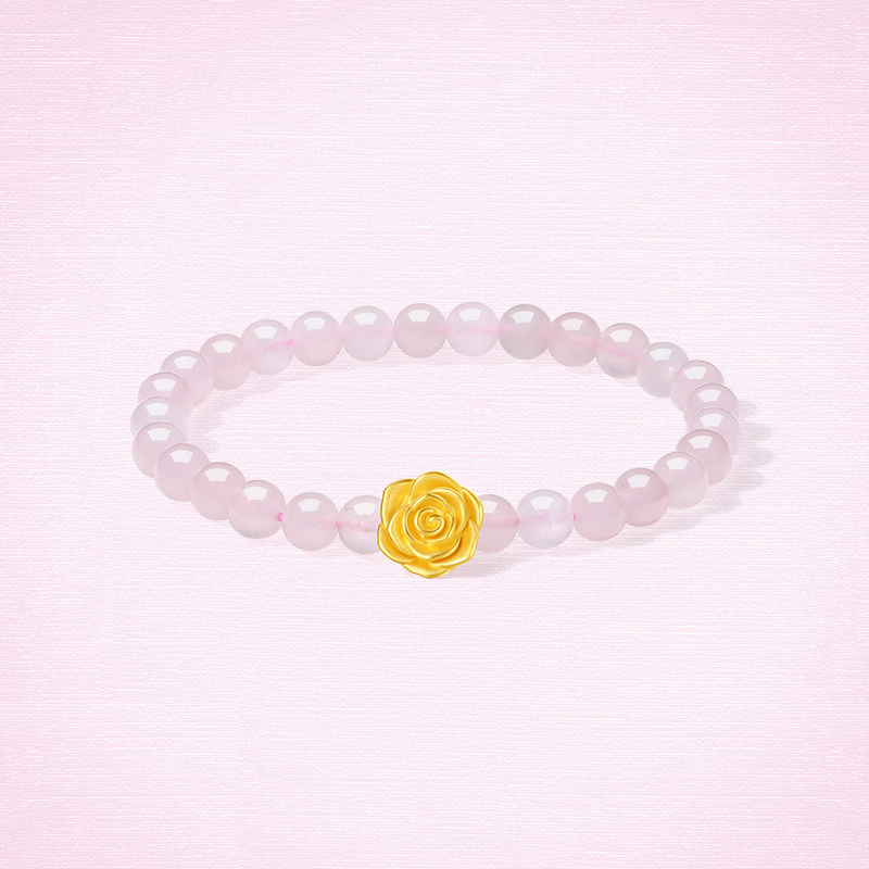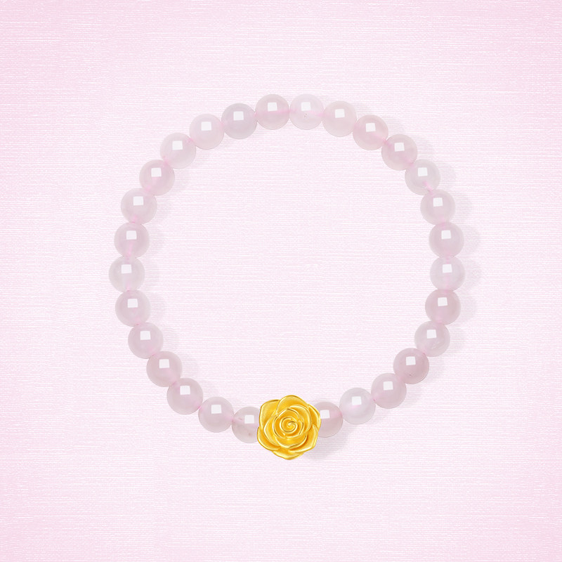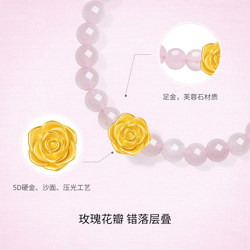 周六福黄金5d硬金定价手链女粉水晶玫瑰手链送女友圣诞礼物旗舰店