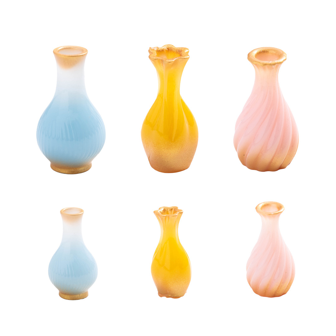 微景观创意艺术花瓶娃娃屋装饰品树脂小摆件仿真花瓶蓝色可插花