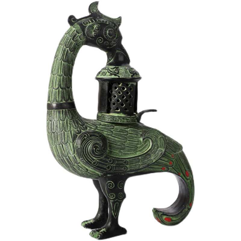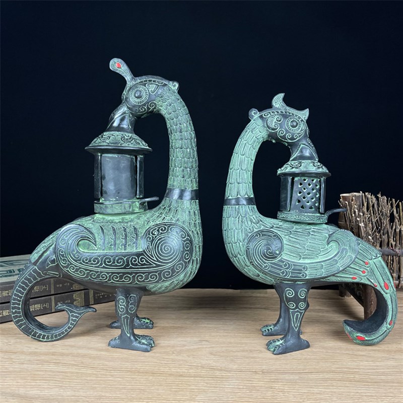 青铜器仿古摆件j鸟灯鸟尊朱雀灯长信宫灯家居饰品婚庆影视道具烛
