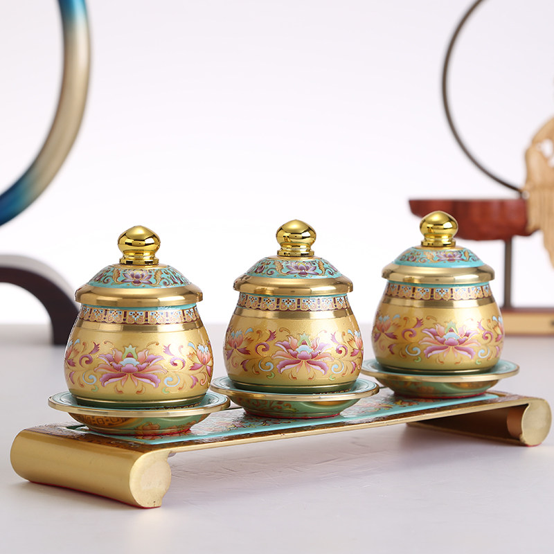 全铜佛具用品供奉家用供佛套装家用香炉供水杯供果盘佛前供灯花瓶