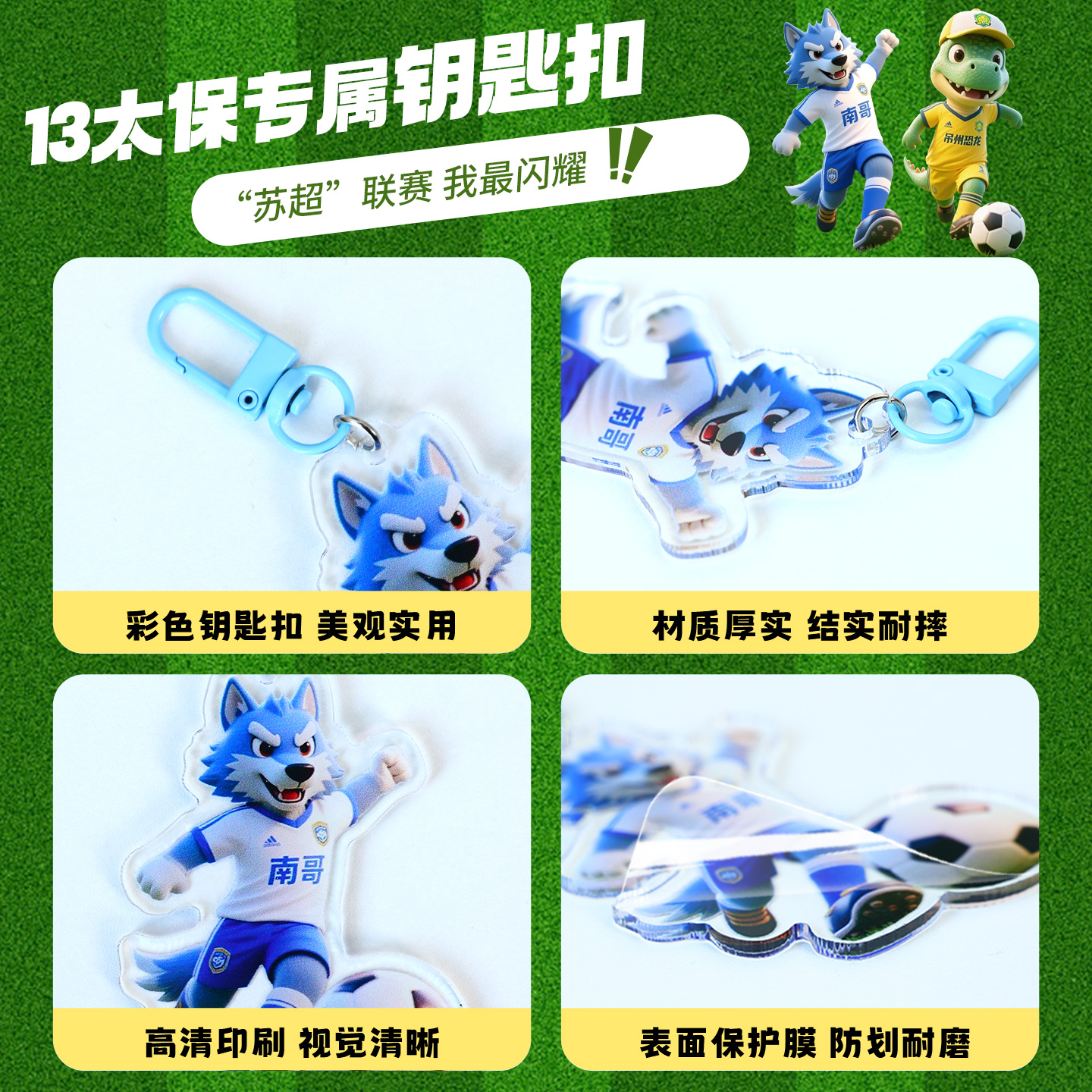 苏超足球联赛钥匙扣创意亚克力挂饰江苏十三太保卡通挂件包包装饰