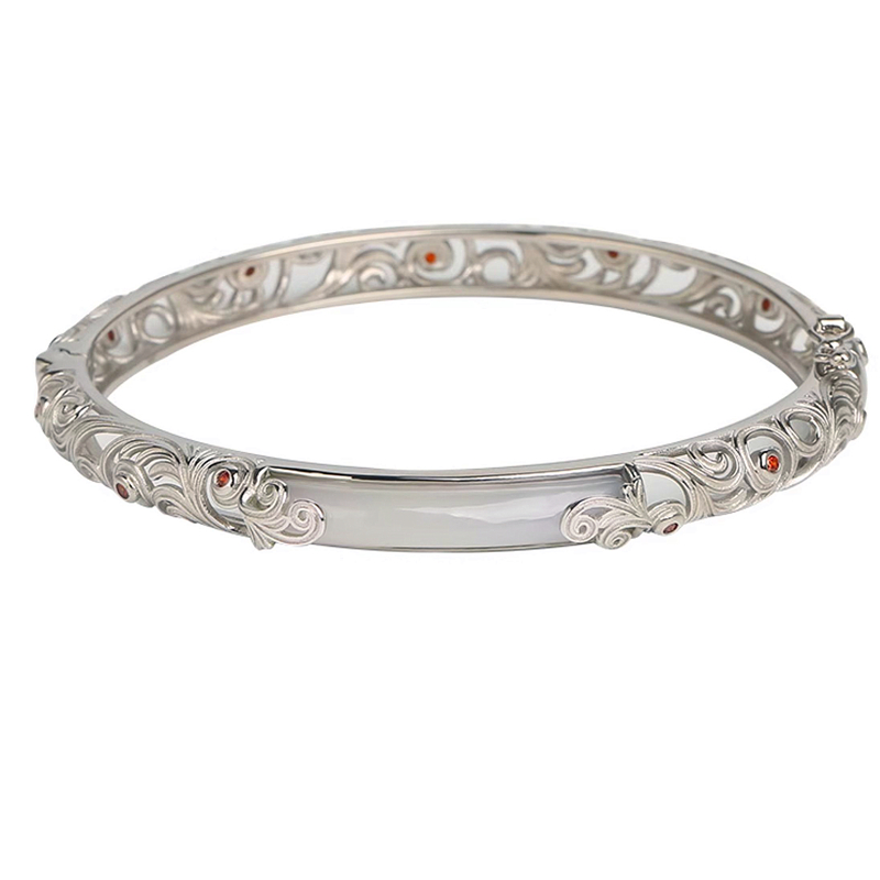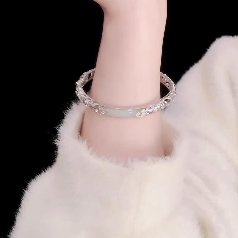 纯银手镯女和田玉花丝古法镶玉手镯新中式镯子高级感妈妈生日礼物