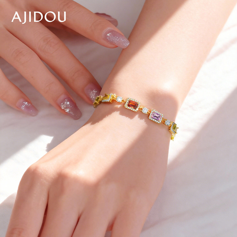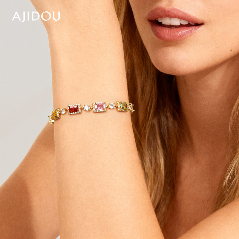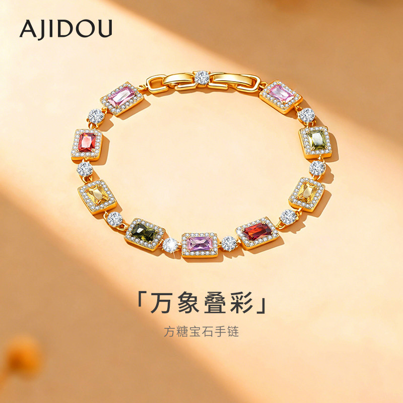 AJIDOU阿吉豆手链女款彩色锆石手串多巴胺设计感轻奢高级气质手饰