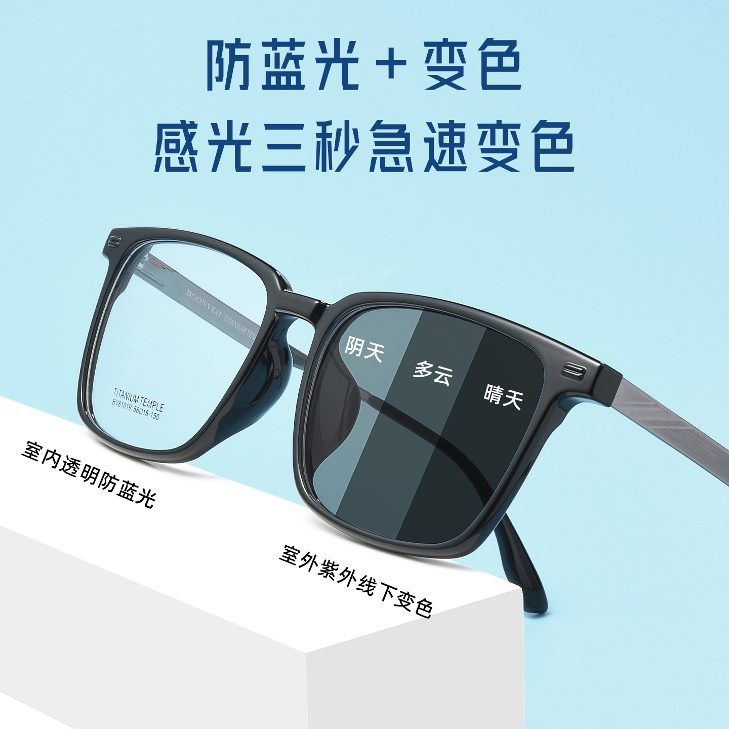 男款超轻钛架大脸黑框纯钛方框变色近视眼镜可配度数专业配镜丹阳