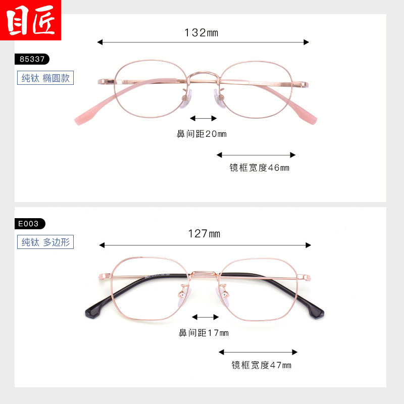 超轻纯钛高度近视眼镜框女可配度数金丝边金边椭圆形小框小脸镜架