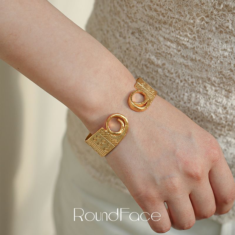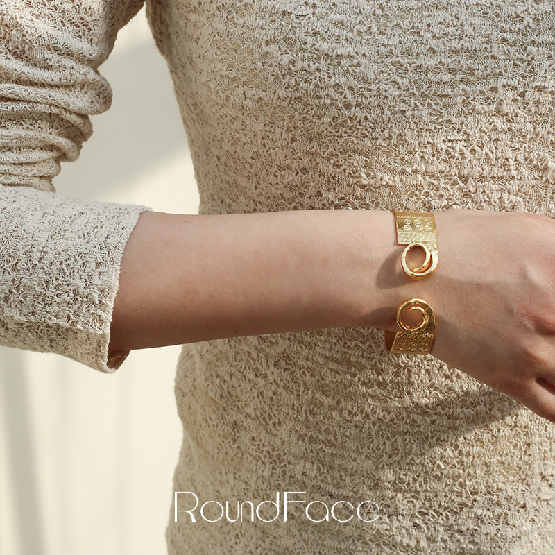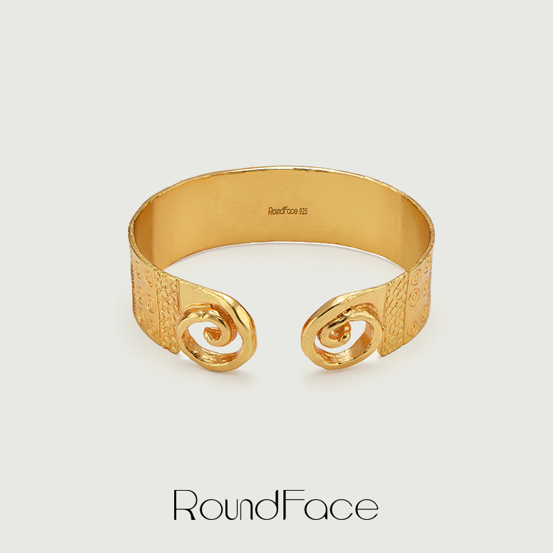 RoundFace夏季新款轻奢高级感心绪图腾金色手镯生日礼物配饰女