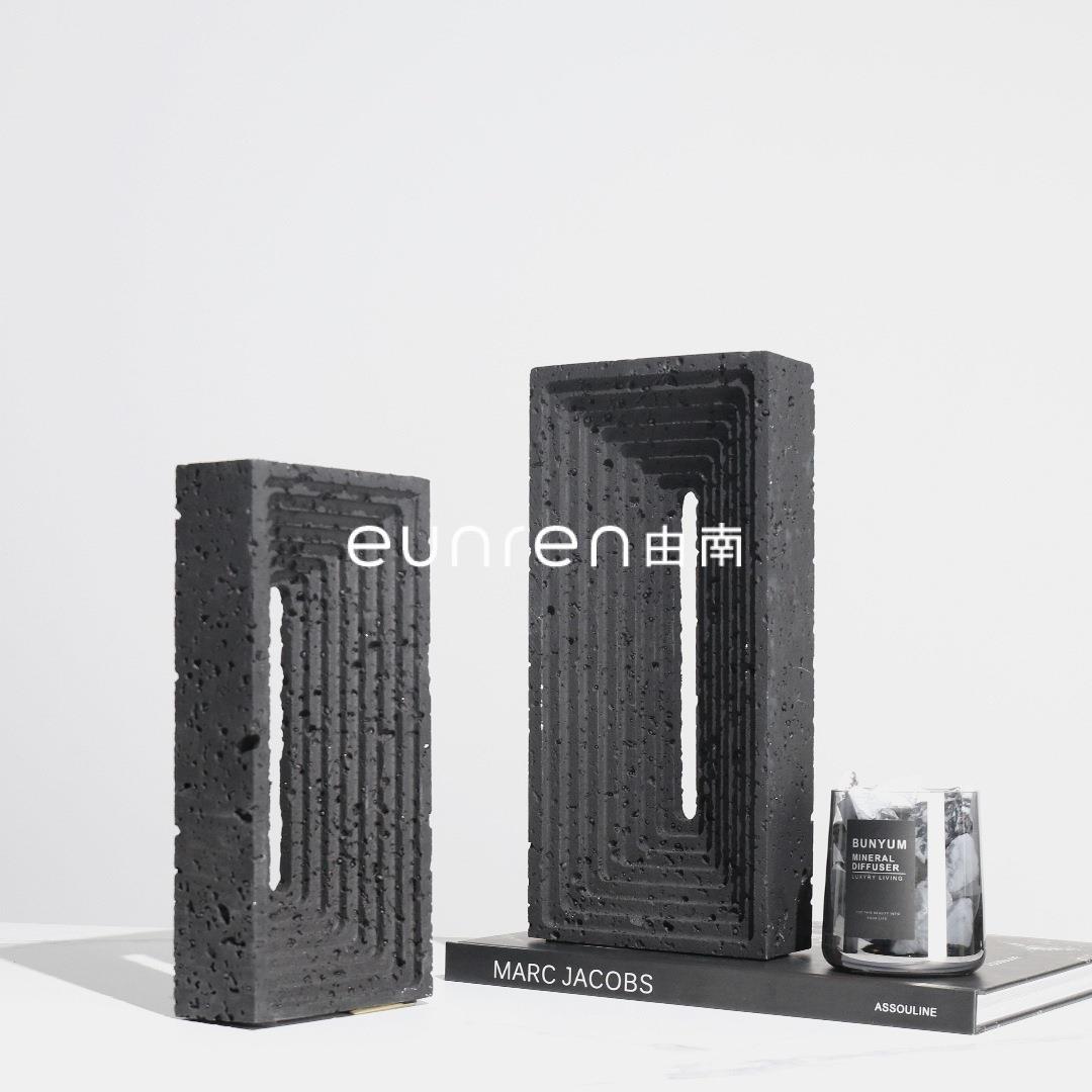 火山石效果简方砖摆件现代轻奢家居客厅样板房软装饰品工艺品