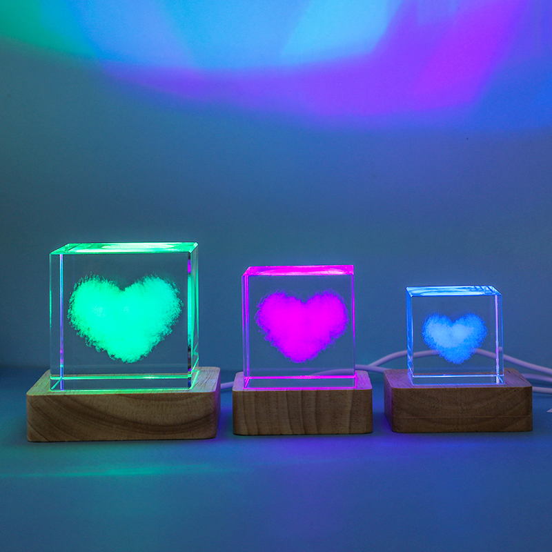 现货速发创意月球爱心云朵方形水晶摆件房间桌面装饰品小夜灯送人