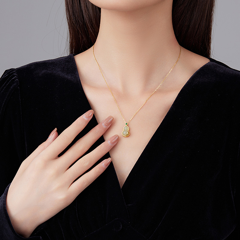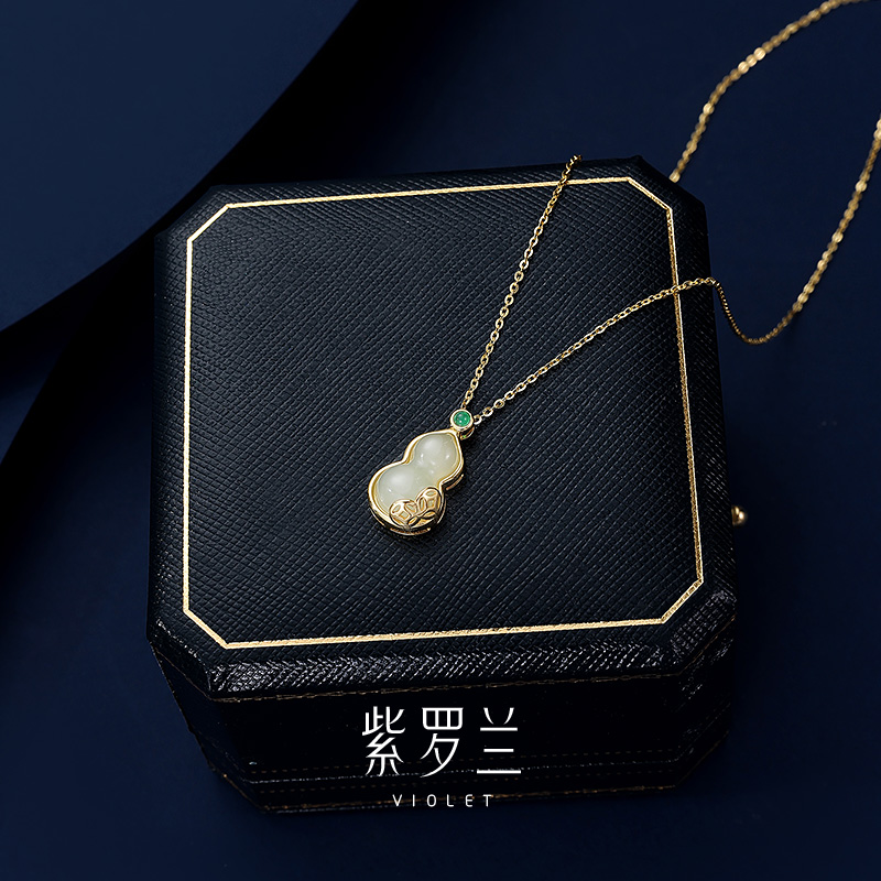 【紫罗兰正版】心葫S925纯银和田玉项链女葫芦锁骨链颈链小众潮