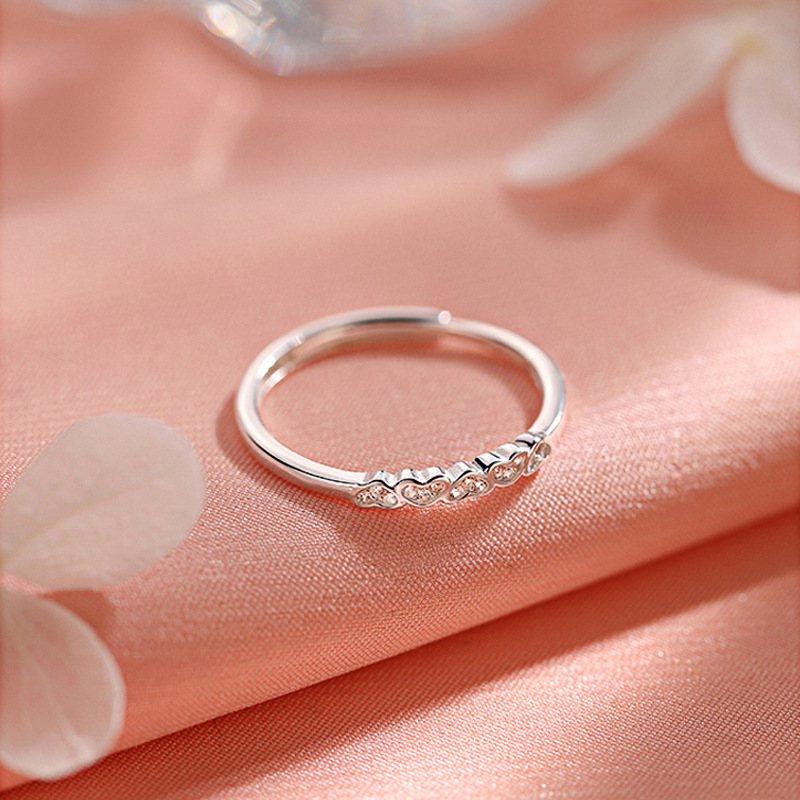 爱心锆石戒指轻奢网红同款镶钻心形细圈指环心心相连送女友