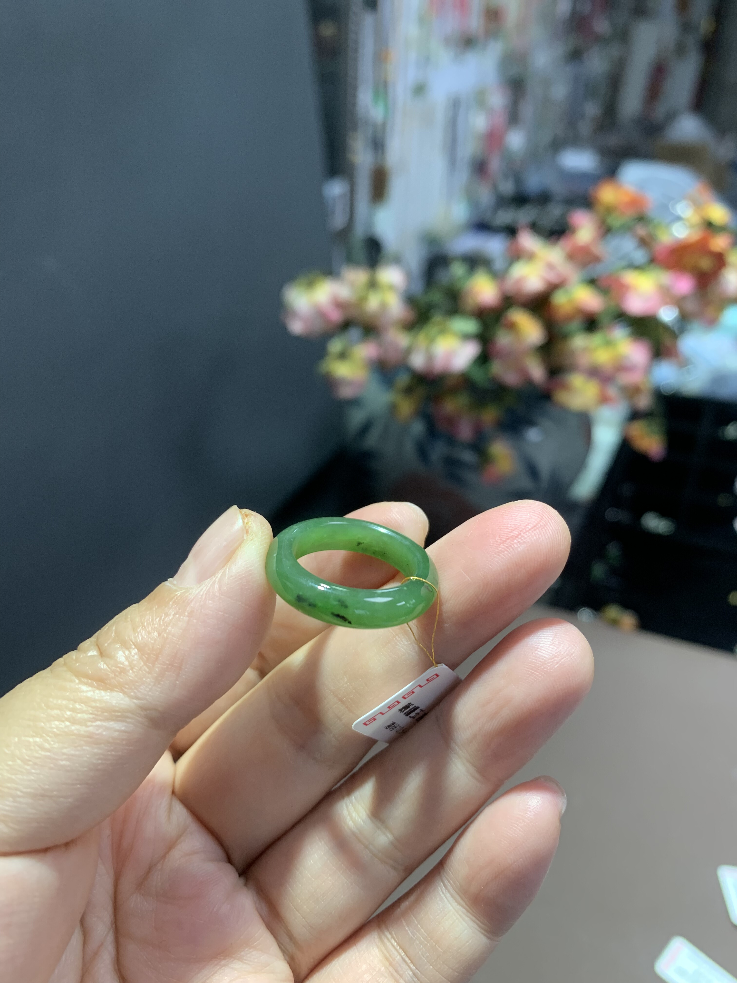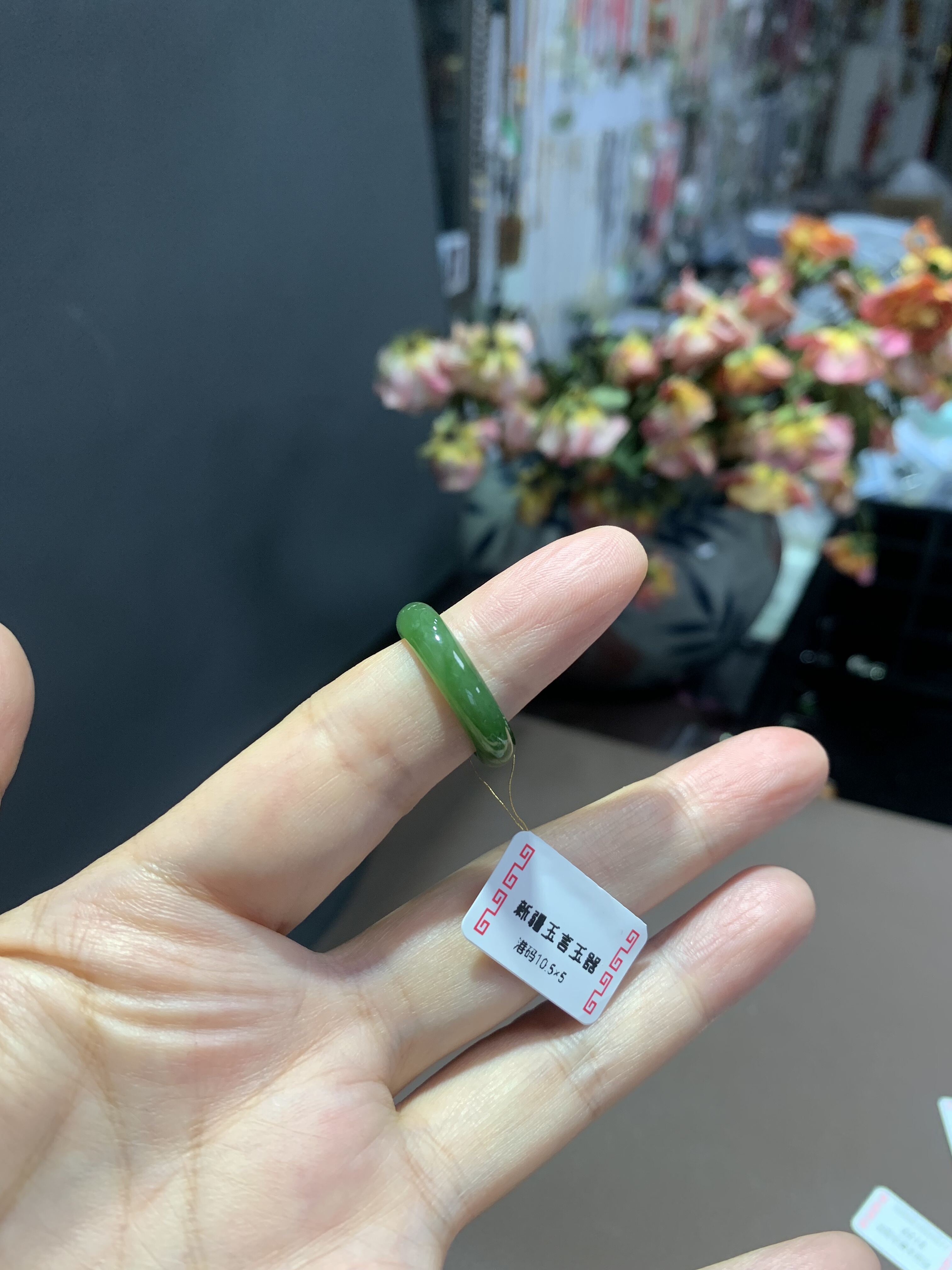 特价天然和田玉碧玉港码10.5码戒指指环跑环一物一图带证书499号