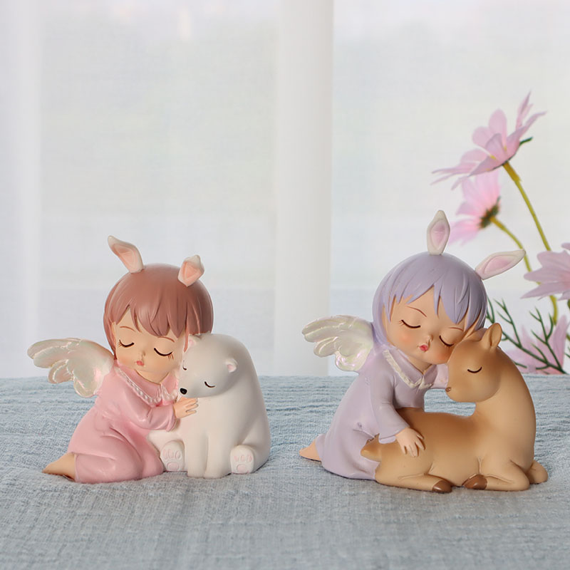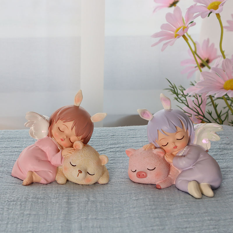 安妮天使小摆件睡觉小猪小熊鹿可爱动物娃娃桌面装饰品少女心礼物