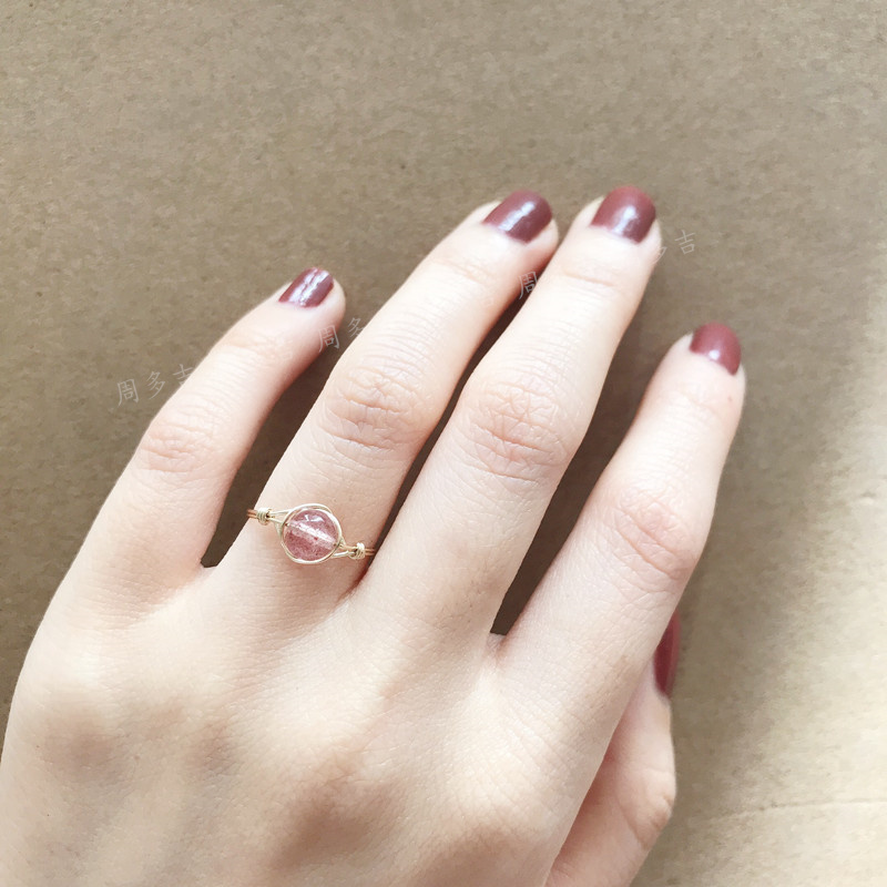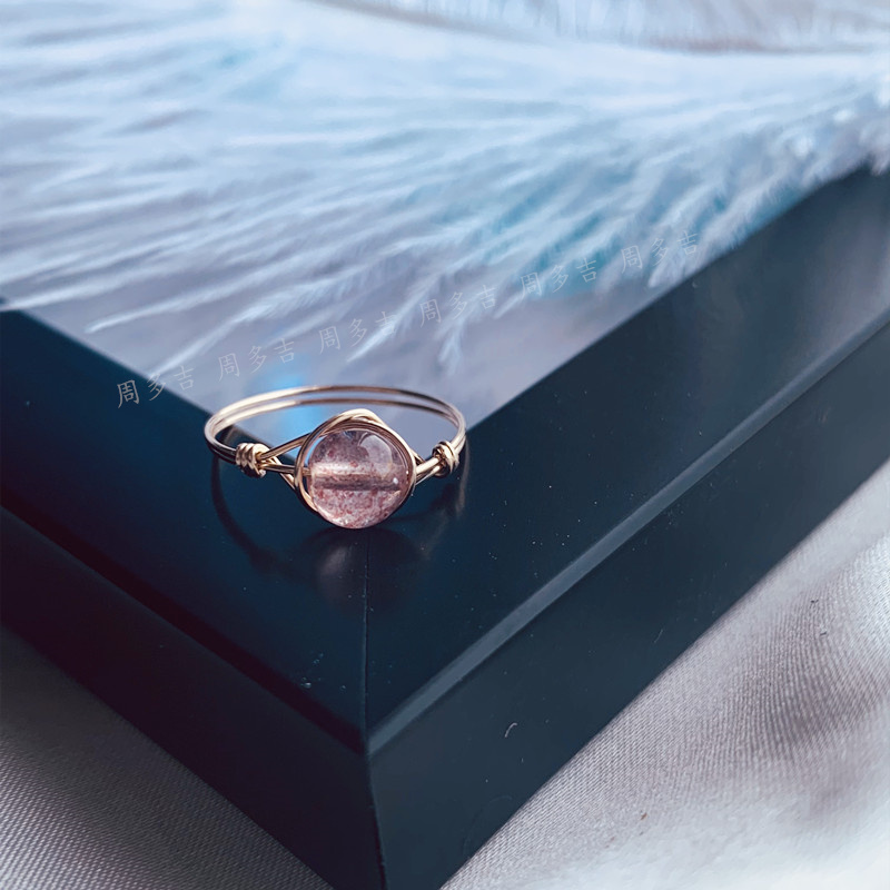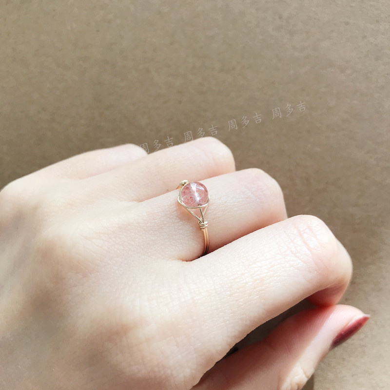 冰种草莓晶戒指天然水晶原创手工定制14K包金绕线圆珠子指环女
