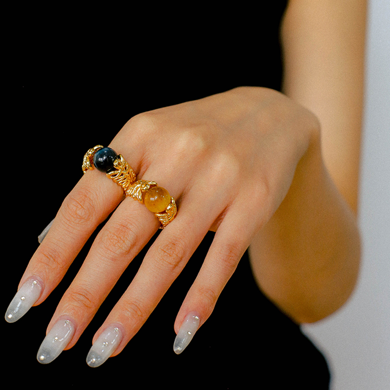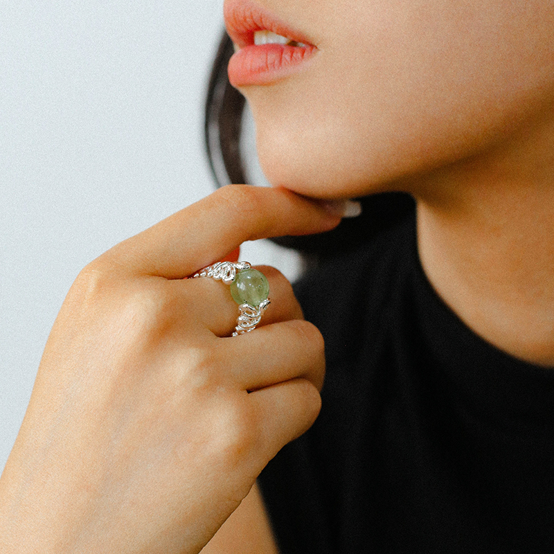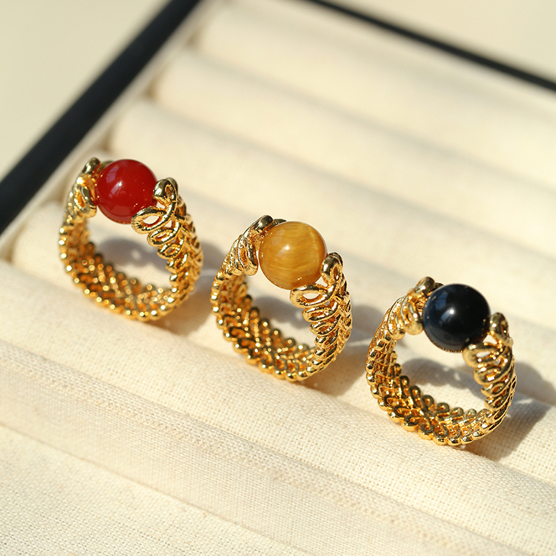 TU家小众设计蕾丝编织天然石戒指女法式气质百搭情绪感指环食指戒