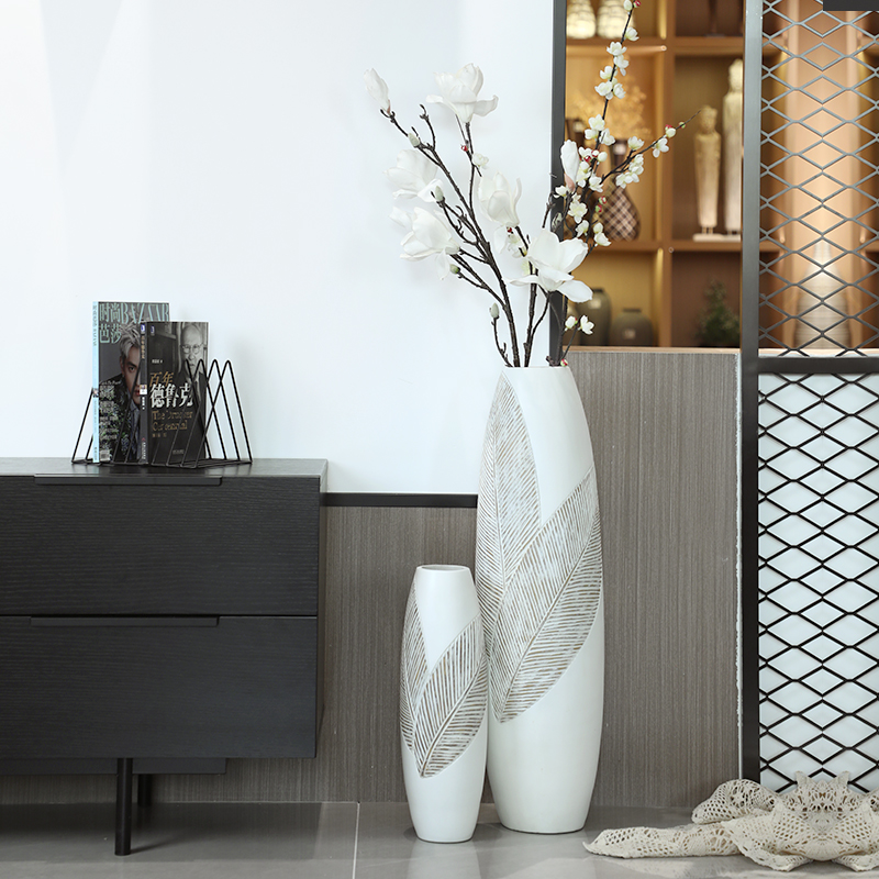 白色落地大摆件高级感客厅电视A柜旁入户玄关办公室前台家居装饰
